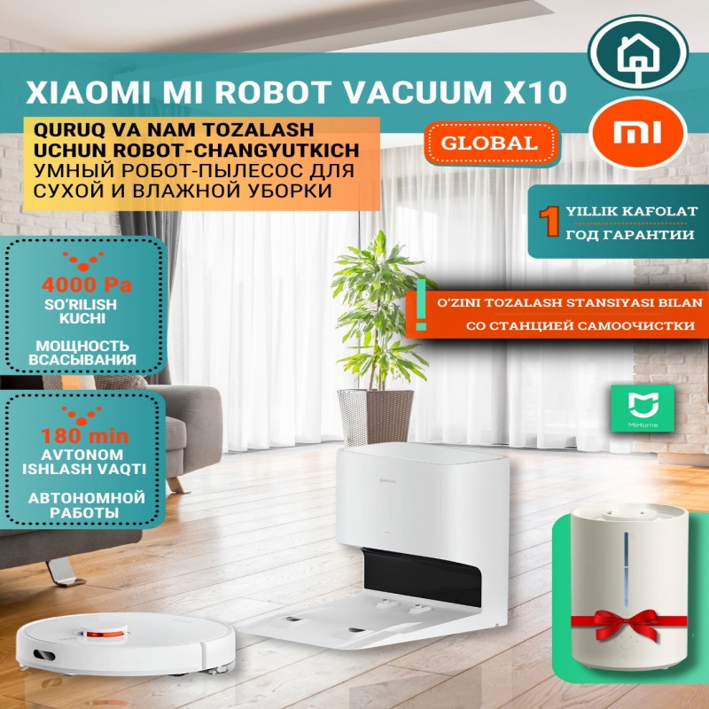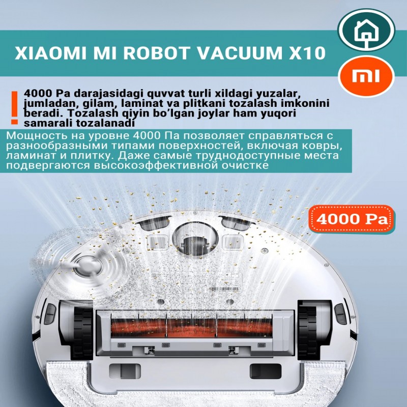• Xiaomi Robot Vacuum X10, 'ni tanlab, Siz shunchaki changyutgichni emas, balki Sizga erkinlik va muhimroq narsalar uchun vaqt beradigan, uyingizni mukammal toza tutadigan ishonchli yordamchini tanlaysiz
